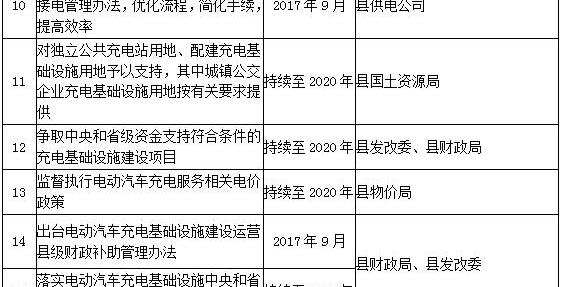 對直接向電力企業報裝接電的運營集中充電基礎設施用電量,實行規模化工業用電價格,2020年前暫免基本電費;其他充電基礎設施的用電量應按其所在地進行分類,向電力企業報告的居民區充電基礎設施用電量應以居民電價中的合并用戶電價為準。充電基礎設施用電量實行峰谷分時電價政策,充電服務費標準實行政府指導價管理。附件:職責分工及時間表