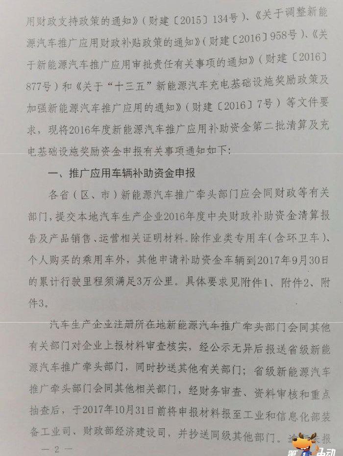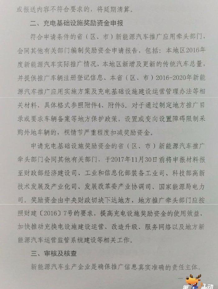 近日,有媒體曝光,工業和信息化部、國家發展改革委、財政部、科技部、,能源局聯合下發《關于啟動2016年新能源汽車推廣應用年度補貼基金(第二批)并上報充電基礎設施激勵基金的通知》,要求各省(區、市)新能源汽車推廣領導部門會同財政部門提交2016年中央財政對地方汽車生產企業補貼資金結算報告及產品銷售和運營的相關證明材料。通知要求,除工作專用車(含環衛車)和個人購買的乘用車外,其他申請補貼資金的車輛,在2017年9月30日前累計行駛里程必須達到3萬公里。新能源汽車補貼資金申請截止日期為2017年10月31日。通知還強調,對通過制定地方推廣目錄或要求車輛備案等地方保護政策,設置或變相設置障礙限制購買外國車輛的,將視情節輕重扣除獎勵資金。充電設施獎勵資金的申報截止日期為2017年11月30日。