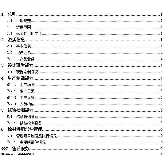 /T 33008.2-2013電動汽車充電設備檢驗試驗規范第2部分:交流充電樁Q/GDW 1485-2014電動汽車交流充電樁技術規范Q/GDW 1592-2014電動汽車直流充電樁檢驗技術規范③直流充電連接裝置GB/T 20234.1-2015導電連接裝置電動汽車充電第1部分:一般要求GB/T 20234.3-2015電動汽車導電充電連接裝置第3部分:直流充電接口④交流充電連接裝置GB/T 20234.1-2015電動汽車導電充連接裝置第一部分:一般規定GB/T 20234.2-2015電動汽車導電充電連接裝置第2部分:交流充電接口15)檢測方法基于以下標準:①直流充電器NB/T 33008.1-2013電動汽車充電設備檢測規范第1部分:非車載充電器Q/GDW 1591-2014電動汽車非車載充電器檢測技術規范對于恒功率充電的檢測方法,自動配電測試方法見附錄B,電動汽車充電設備測試規范見附錄B2 NB/T 33008.2-2013第2部分:交流充電樁檢測技術規范Q/GDW 1592-2014電動汽車交流充電樁2.2.2管理體系認證。具有質量管理體系、職業健康管理體系和環境管理體系認證證書,證書在有效期內,有定期年檢記錄,認證范圍涵蓋經驗證的產品。2.3產品性能見供貨合同及相應的銷售發票。※。1) 合同的供應商和實際產品的生產者都是供應商本身。2) 產品履約合同應為國內履約合同。3) 產品性能應為整套產品的銷售性能。4) 直流充電器性能為30kW及以上,2014年1月1日至2016年12月31日期間至少供應100臺直流充電器。5) 2014年1月1日至2016年12月31日期間,至少提供100套交流充電樁。6) 績效必須是供應商和最終用戶的績效,同時遵守合同和發票。7) 不被認可的成就包括(但不限于):①與類似產品制造商取得的成就。②零部件性能。③供應商、分銷商和代理商之間的績效。(4) 出口業績。(5) 認證材料不能確認供應性能要求的所有要素。3設計研發能力3.1獲得專利指發明專利和實用新型專利。4生產制造能力※4.1在生產現場查看土地使用權證書、房屋產權證書、房屋租賃合同等相關信息,并對生產現場進行實地考察。產品應有配套場地(包括專用生產裝配場地、原材料儲存場地、測試調試場地等),生產場地應長期擁有或租賃(租賃期為一年或一年以上)。4.2生產過程參見過程控制文件、管理體系文件和工藝流程控制記錄。※。1) 查閱生產和測試過程控制文件和過程控制記錄以及其他相關信息。2) 查閱供應商完整的系統組裝和聯調過程控制文件和過程控制記錄等相關信息。3) 現場有明顯的標志,現場有生產設備的操作規程。4.3對于生產設備,請參考設備的實際情況以及采購發票和其他相關信息。※。1) 必須有適合產品生產的整機裝配設備。包括:充電設備裝配線、電動螺絲刀、電線加工設備、銅排加工設備、標簽加工設備等。必要的生產設備必須歸自己所有,不能租用和借用其他公司的設備,并且可以正常使用。2) 自主研發的設備應提供設計圖紙、外包協議等證明材料。4.4人員構成是指人力資源部門的管理文件(如勞動合同、人員名冊、社會保障、培訓記錄、職稱證書等),用于驗證管理人員、設計開發人員、制造人員……