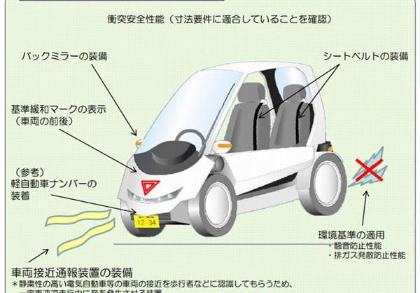 日本放寬了超小型機動車座椅尺寸和空間、靠背安裝強度和沖擊吸收能力的標準。雖然也規定必須配備安全帶,但安裝強度標準也有所放寬。