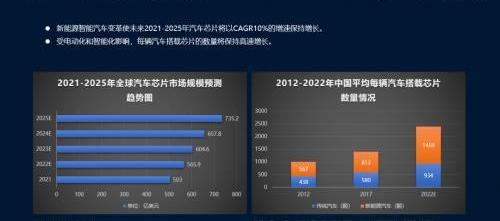 圖:汽車芯片在整車中所占的比例顯著提高。根據中國工商科學院的數據,預計到2025年,全球汽車芯片市場規模將達到735.2億美元,年復合增長率為10%。與此同時,隨著智能化和電動化的滲透,中國每輛車的平均芯片數量也在保持快速增長。預計到2022年,新能源汽車平均每輛車將配備1459個芯片,而傳統汽車將配備934個芯片,這將是一個巨大的增長。在……之前……
